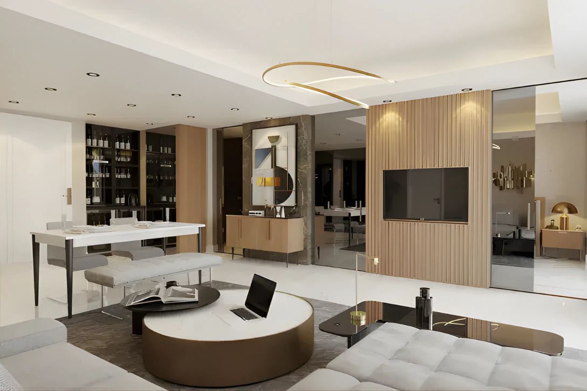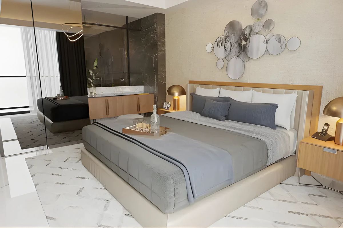 Die Architektur von Querencia fängt die Harmonie von Meer, Himmel und moderner Form ein. Elegante Glasfassaden, goldene Akzente und offene Terrassen schaffen eine ikonische Silhouette entlang der Skyline von Long Beach. Die Innenräume zeichnen sich durch großformatige Porzellanfliesen, natürliche Holzdetails und minimalistische Beleuchtung aus, wodurch sich jedes Zuhause luxuriös und einladend anfühlt.